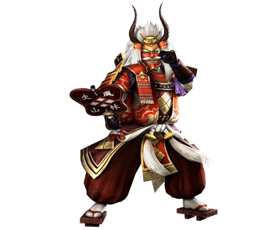 甲斐を治める大名で、「甲斐の虎」と呼ばれる一代の英傑。余裕と知性に満ち、明るく快活な人となりで家臣団の尊敬を一身に集めている。戦国最強の呼び声高い武田騎馬隊を率いて乱世に王道を敷くべく上洛を志す。