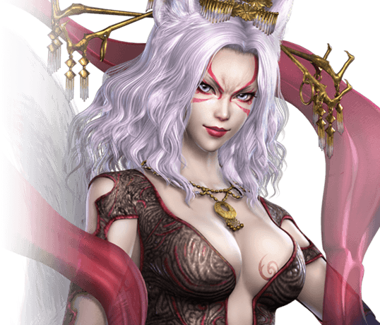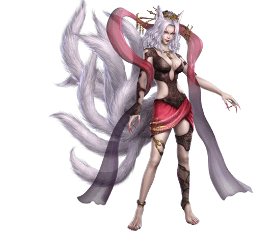 腰から生えた9本の尾を、自在に操って戦う。時には尾を人物の姿に変化させ、敵を翻弄する。