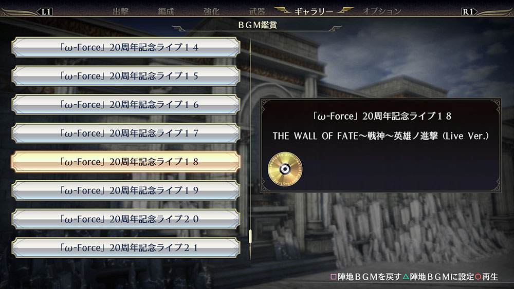 | 2018/11/08 配信 | 「ω-Force」20thライブBGM「THE WALL OF FATE~戦神~英雄ノ進撃」 100円+税 |