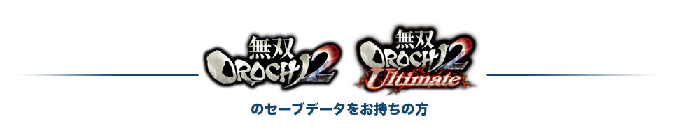 | 『無双OROCHI3』PS4®版 で参照可能なセーブデータ | 『無双OROCHI2』PS3®版 『無双OROCHI2 Ultimate』PS4®版 『無双OROCHI2 Ultimate』PS3®版 『無双OROCHI2 Ultimate』PS Vita版 |