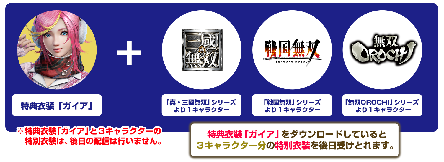 ③発売後、特典衣装「ガイア」をダウンロードした方限定で、特別衣装3個をプレゼント