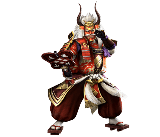 甲斐を治める大名で、「甲斐の虎」と呼ばれる一代の英傑。余裕と知性に満ち、明るく快活な人となりで家臣団の尊敬を一身に集めている。戦国最強の呼び声高い武田騎馬隊を率いて乱世に王道を敷くべく上洛を志す。