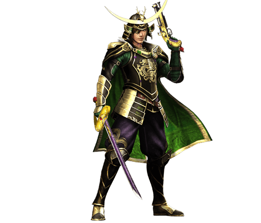 陸奥の大名・伊達家の若き当主。右目を眼帯で覆った姿から「独眼竜」の異名をとる。野心高く、若さに似合わず姦策に長けるが、本質的には素直で明るい性格。傲岸な振る舞いの中に、時折奥州の覇者たるべき風格をのぞかせる。