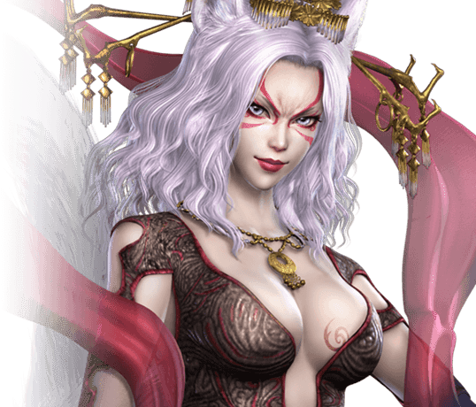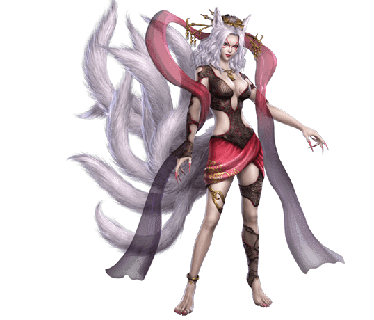 腰から生えた9本の尾を、自在に操って戦う。時には尾を人物の姿に変化させ、敵を翻弄する。
