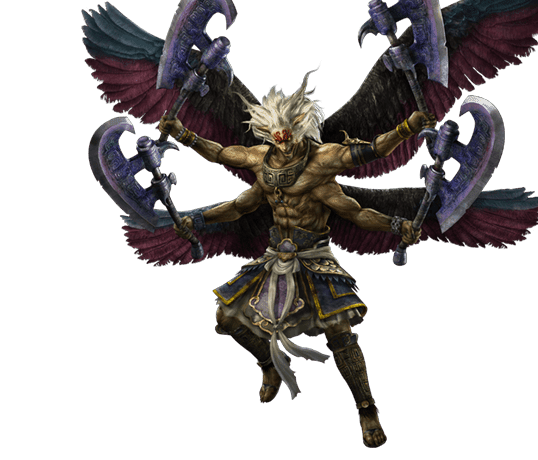 秩序のない、混沌とした世界を好む妖怪。人語を操る獣の頭と2対の大きな翼、2対の腕を持ち、すべての腕に持つ大きな鉈で、敵を圧倒する。秩序を持ち込む存在に出会うと、尊大かつ強硬な態度で排除する。