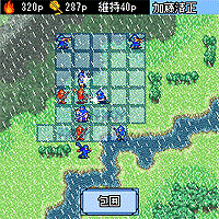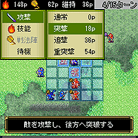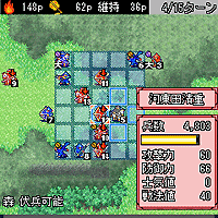 強敵に立ち向かうに当たって重要となるのがこの「戦法陣」。「戦法陣」は、3人の“戦法武将”によって形成が可能な陣形で、この陣の中に囲みこまれた敵部将は大きく弱体化します。形成逆転のチャンスを頭脳的に演出できます。