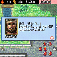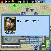 一人モードの「国盗り合戦」では、コンピューターを相手に天下統一を目指し合戦を行います。