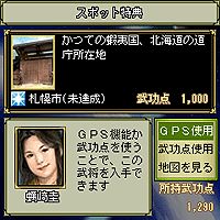 携帯電話のGPS機能を使い、全国各地の戦国時代にまつわる史跡や各県庁所在地などで、その土地に関連のある武将を入手したり、大きく成長させる事が可能です。まずは地元の武将から、お好みの武将のゆかりの地を巡る際にご活用いただけます。