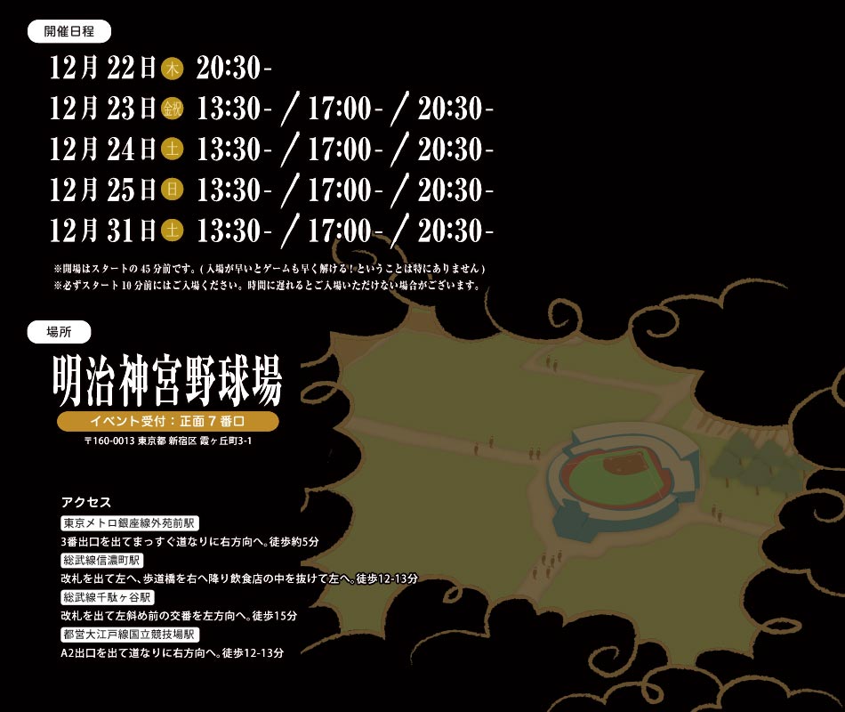 十. 明治神宮野球場の夜は大変に寒いです。十分に防寒してお越しくださいませ。