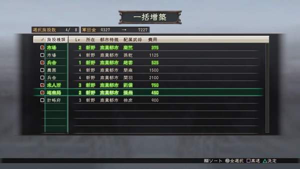 一括増築では都市にあるすべての都市の施設を一度に増築できます。