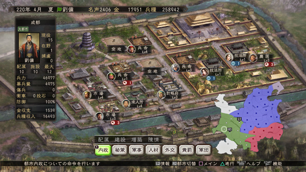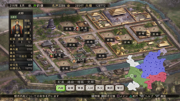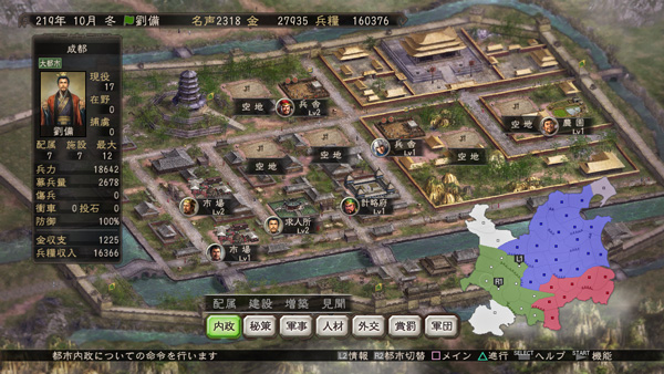 成都は大都市で、施設も12個建設できるのですが、空地の多いこのような状態では大した収入を得ることはできません。