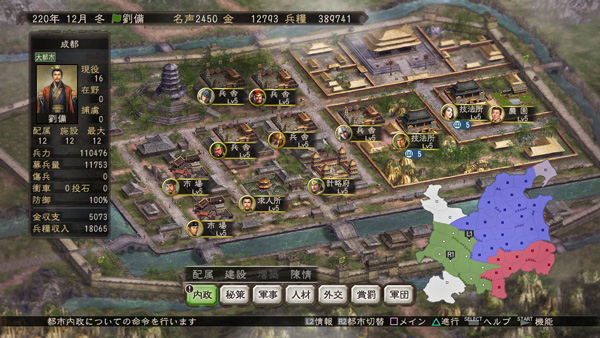 「大都市」である成都では兵舎による募兵量が通常の都市よりも多いため、兵舎を多めに建築しています。