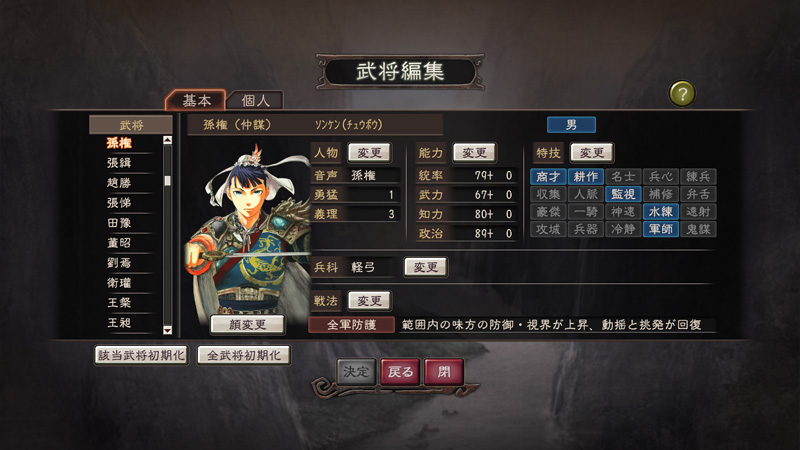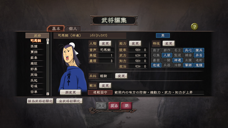 ゲーム内メニュー「武将編集」にていつでも顔グラフィックを変更することができますので、一味違った“三国志”をお楽しみください。