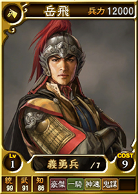 配信武将:岳飛 / 張良 / 李牧 / 田単 / 蕭何 / 韓信