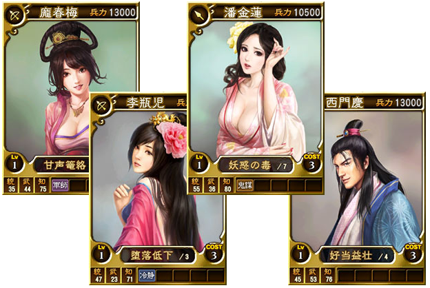 配信武将:西門慶 / 潘金蓮 / 李瓶児 / 龐春梅