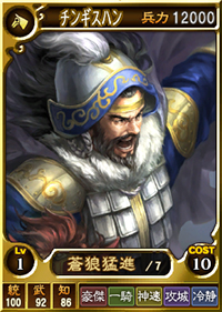 配信武将:チンギスハン / ボルテ / フビライハン / ジャムカ / 耶律楚材 / ラッチ