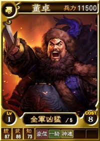 董卓軍の猛将たちを手に入れよう!膂力に優れ、武芸にも秀でた西涼の雄・董卓、