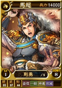 潼関で活躍した武将たちをまとめて入手できるチャンス!父・馬騰の仇を討つために挙兵した闘将・馬超、