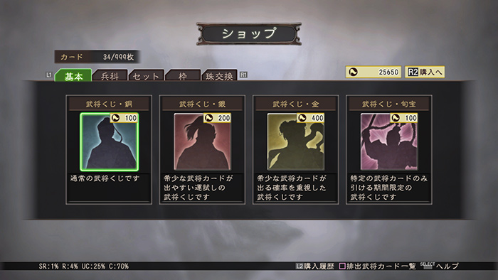 通常の「武将くじ」に加えて、特定の兵科のみが出る「兵科くじ」や、