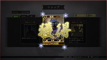 戦闘終了後には、武将カードがもらえる「武将くじ」を引くことができます。