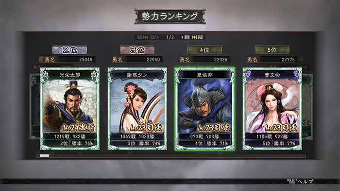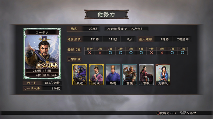 勝利を重ねることで「勇名」を獲得し、全国のプレイヤーたちとランキングを競うことができます。