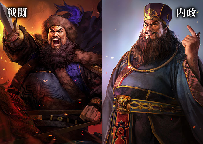 特定の武将に「戦闘」と「内政」で異なるグラフィックを用意。