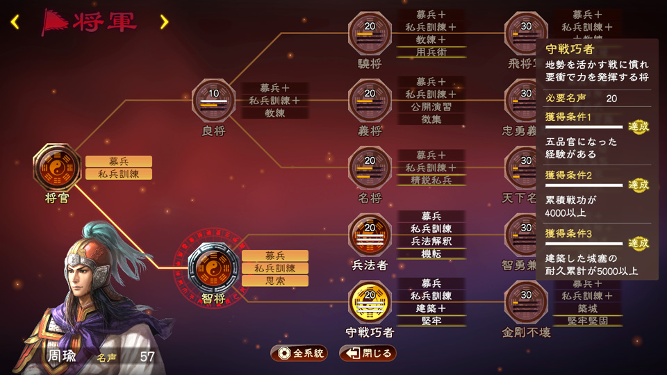 各威名には獲得条件が設定されていて、武将がどう活躍したかによって、獲得できる威名が変化します。その後も活躍を続けると、上位の威名に進展したり、威名の分岐が発生したりします。なお、上位の威名ほど、強力で魅力的なできることが開放されます。