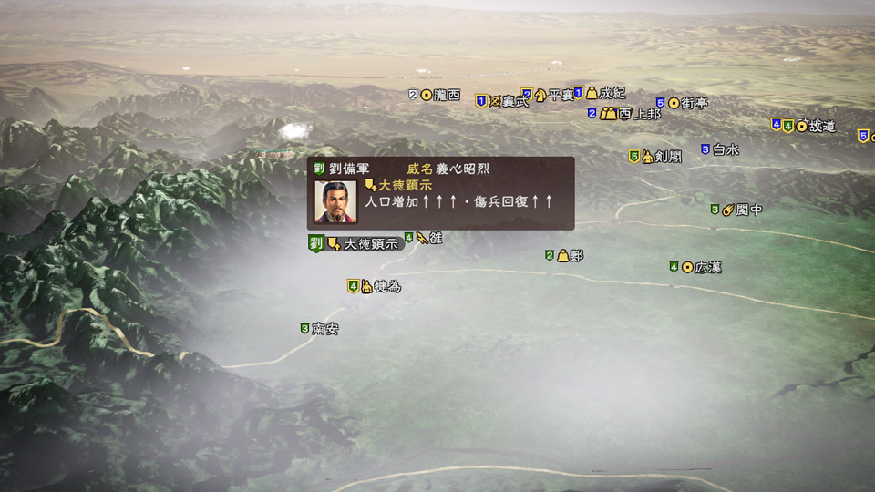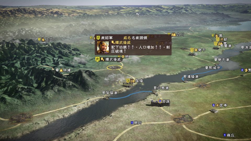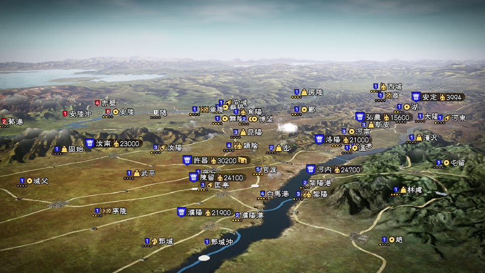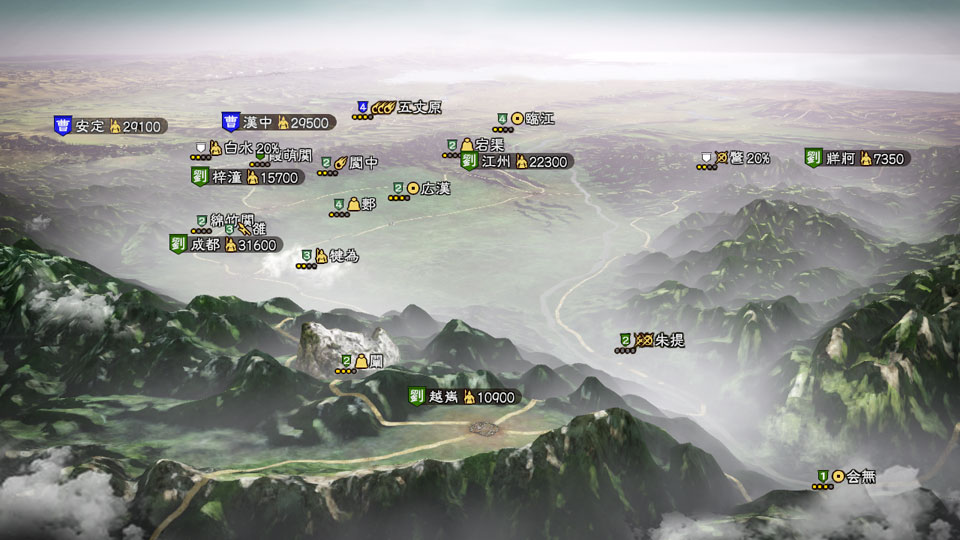 中華全土に存在する集落や地点が要衝となり、そこにさまざまな機能を持つ城塞を築いたり、軍勢を布陣させて備えることで、戦略上の要として使用できます。要衝にはレベルが存在し、レベルが高いほど、より強力な効果を持つ城塞を建築でき、建てた城塞の耐久度も上昇します。