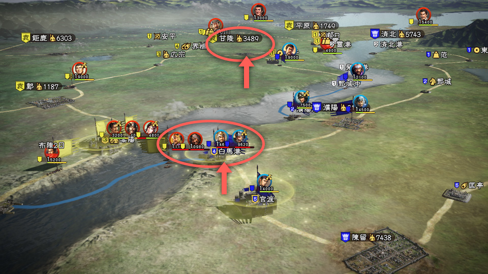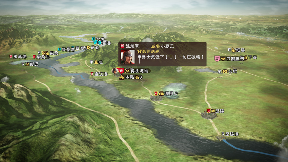 これにより、軍勢士気の回復を待って万全の態勢で攻める、軍勢士気は低めだが機を逃さず強行するなど、戦闘での駆け引きの幅が広がります。また、軍勢士気が低下した敵軍を狙って優位に戦う、といった手も取りやすくなります。