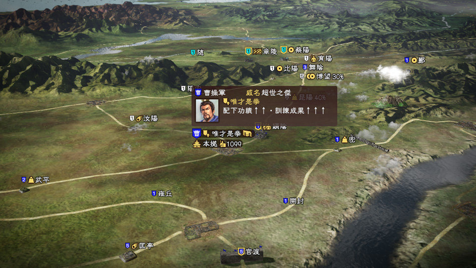 プレイヤー以外の君主は、勢力の拡大とともに威名が成長します。威名が成長すると、君令も変わり、効果が大きくなります。ゲームの展開に合わせて、ライバル勢力も着実に強くなっていきます。