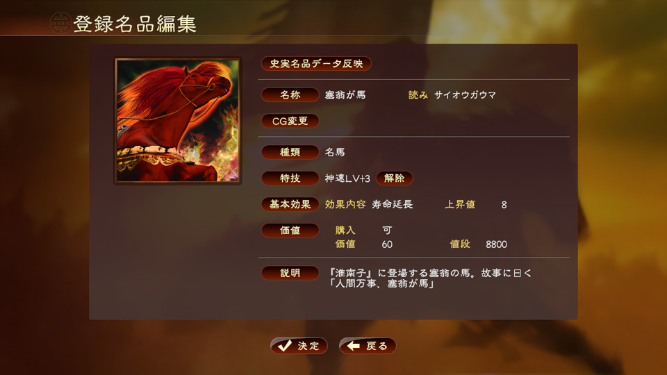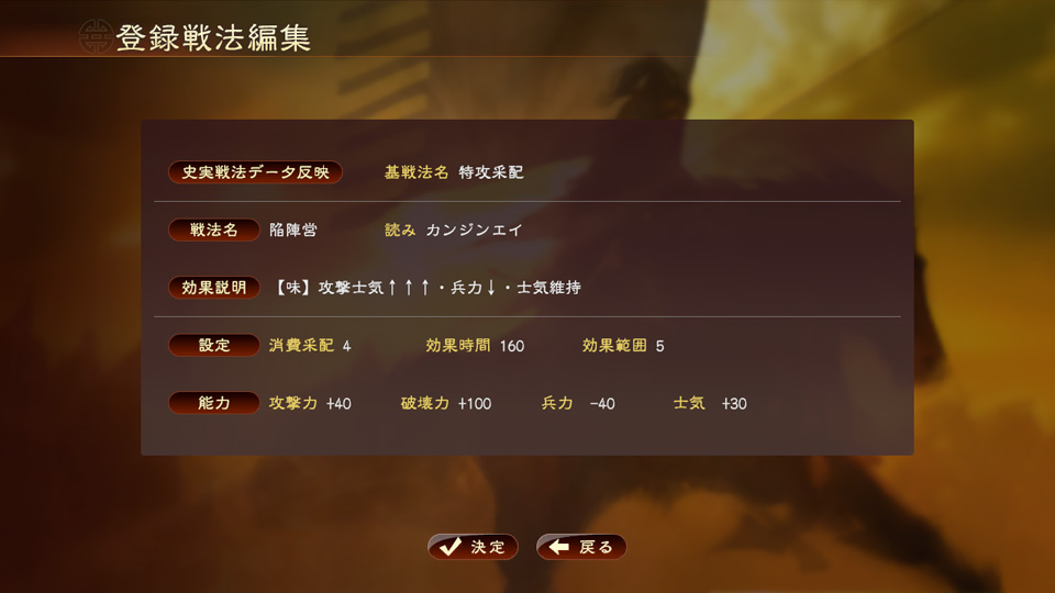 元となる既存の名品や戦法を選択し、各項目を編集することで、あらたなものを登録できます。