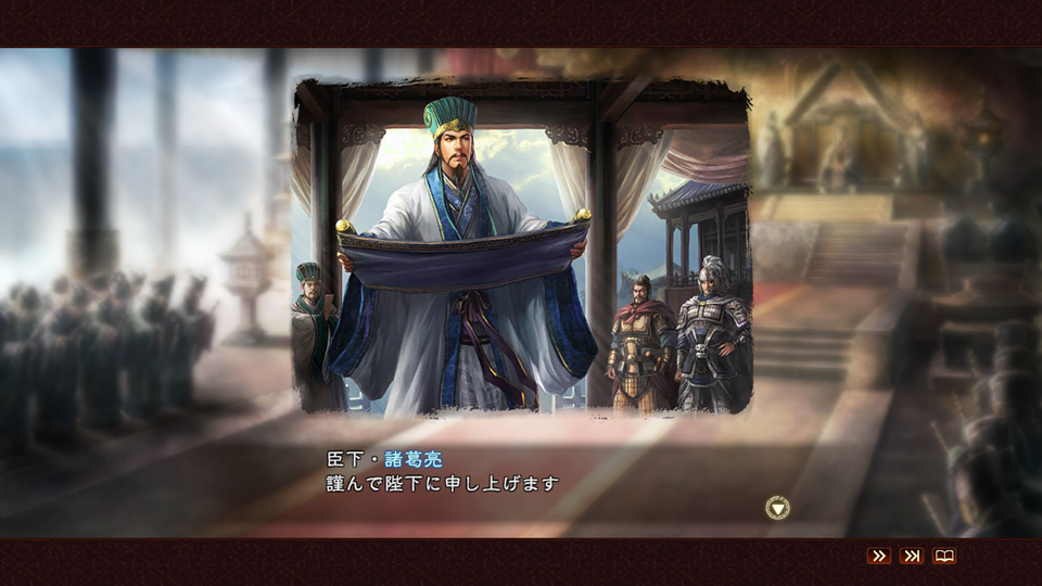 三国鼎立から数年が経ち、各勢力が己の政略に乗り出します。呉王・孫権は陸遜を重用して安定した国家を運営。魏の皇帝・曹叡は司馬懿とともに天下統一を目論み、蜀の丞相・諸葛亮は亡き劉備の悲願達成のため北伐を決意します。