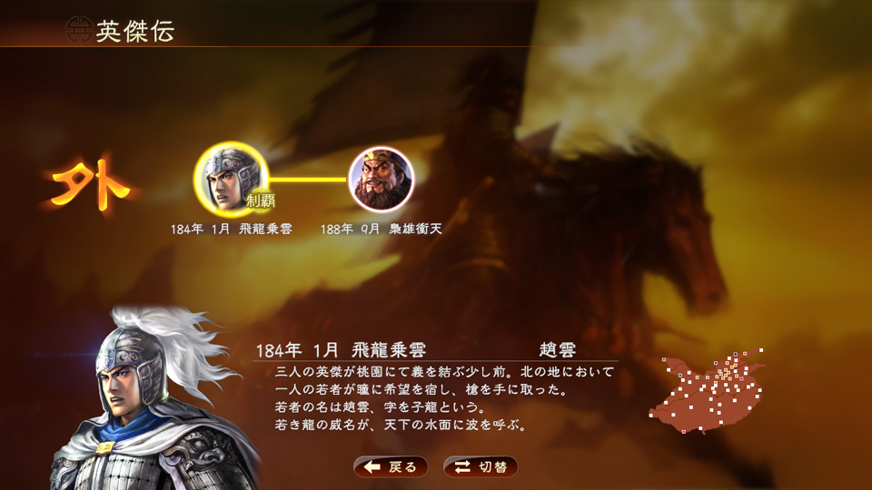 「小覇王勇躍」(史実)、「華容道の変」(仮想)、「潼関の戦い」(史実)、「出師の表」(史実)が新シナリオとして追加されます。