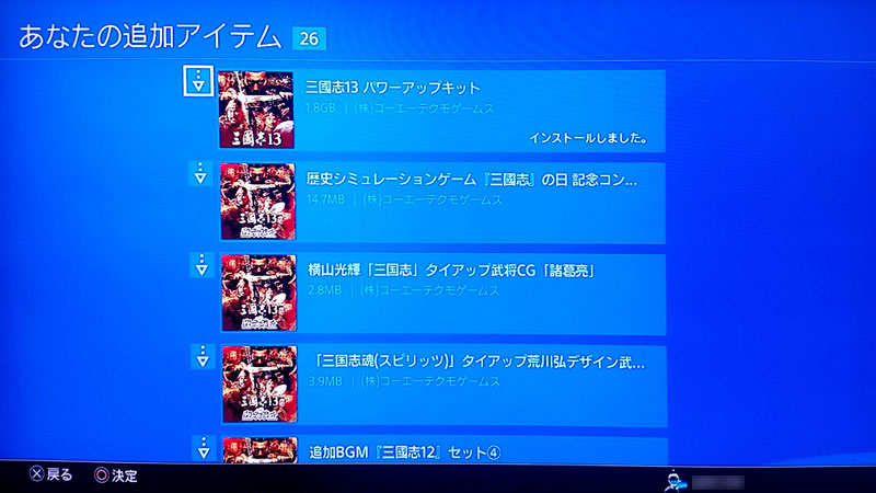 すでにPS4®版/PS3®版の『三國志13』をお持ちで、「パワーアップキット」(ダウンロード版)を購入される際は、以下の手順に沿って行ってください。