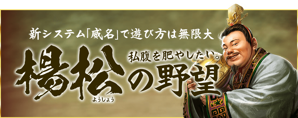 私兵を率いて中華全土に武名をとどろかせる侠客や、天下を金の力で操る商人、人心の掌握に長けた軍師など、あらゆる身分と立場において活躍の場がどんどん広がる新システムです。