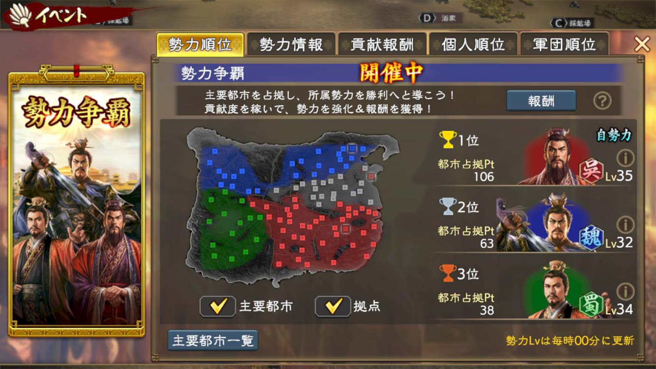 第1回の「勢力争覇」では「三国鼎立」をモチーフとして、魏呉蜀の3勢力が登場。