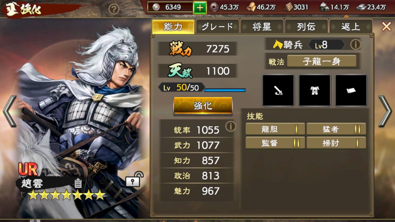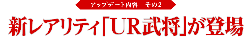 「SSR武将」の上位レアリティとなる「UR武将」を追加。能力のほか、戦法や技能も「SSR武将」と比べて強力。