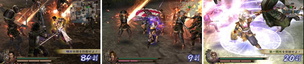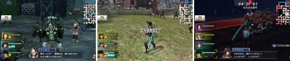 「プレイキャラチェンジ」機能を採用。広大な戦場ではミッションが同時多発的に発生し、砦の制圧や敵将の撃破など1人の武将だけでクリアするには困難となるが、戦場の状況に応じて、武将固有の技能「戦技」を駆使しながら、的確に操作キャラクターを切り替えつつ戦闘するプレイスタイルを確立した。