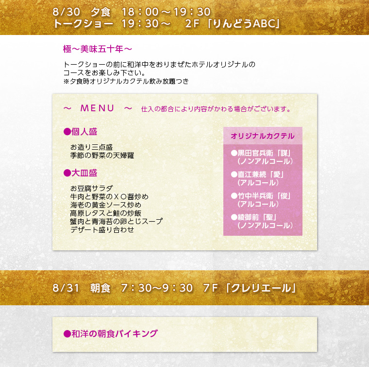 2014年8月30日(土)声優トークショー夜の部 + 30日(土)宿泊(朝食付)