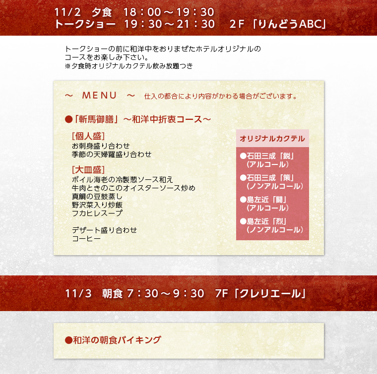 2014年11月2日(日)声優トークショー夜の部 + 2日(日)宿泊(朝食付)