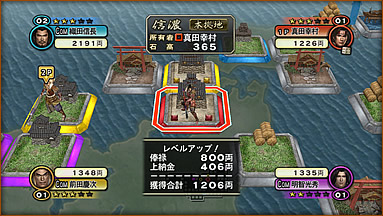 日本列島をデザインした双六状のゲームボードを移動していき、領土を広げ、お金を稼いでいきます。