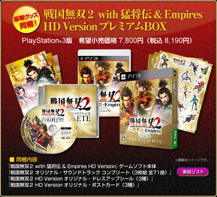 『戦国無双2 猛将伝』、『戦国無双2 Empires』の3タイトルがこの1本でお楽しみいただけます。