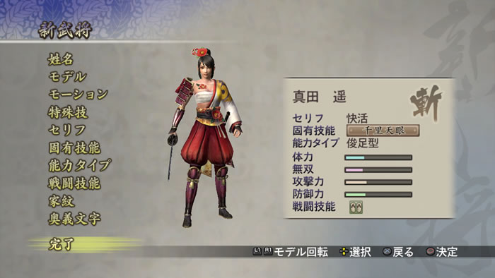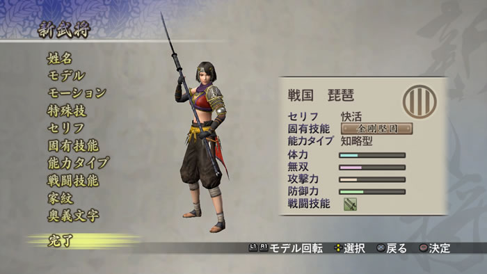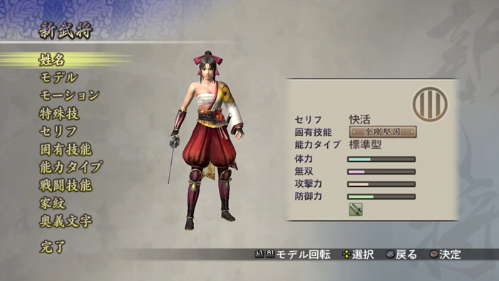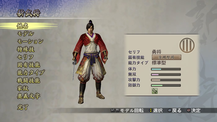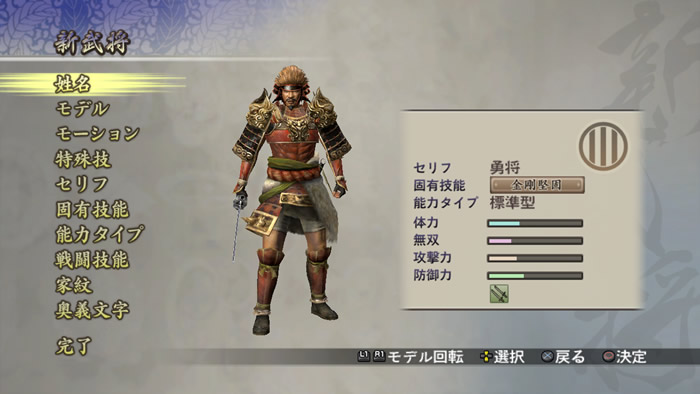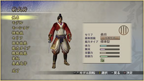 本作ではエディット武将の選択可能モデルを大幅に増加!より自由な武将の作成を実現します。