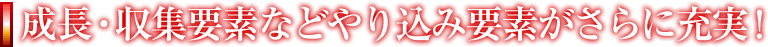成長・収集要素などやり込み要素がさらに充実!属性やレアリティ、パラメータごとにバリエーションが多彩な「武器」や、「技能」を修得することによって武将が強化されるなど、成長システムを一新。