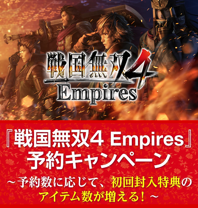 『戦国無双4 Empires』予約キャンペーン 〜予約数に応じて、初回封入特典のアイテム数が増える!〜