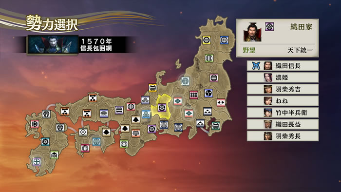 新しいキャンペーンシナリオ「一国一将」「信長包囲網」が追加されます。