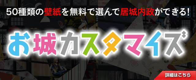 50種類の壁紙を無料で選んで居城内政ができる、好みの壁紙で理想のお城にカスタマイズしよう!