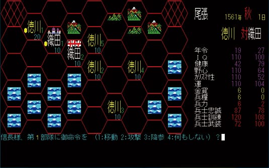『川中島の合戦』は、シブサワ・コウが最初に開発したゲームとして発売(1981年10月26日)されました。本作は戦術級シミュレーションゲームです。プレイヤーは武田信玄となり、川中島で上杉謙信率いる部隊の撃破を目指します。