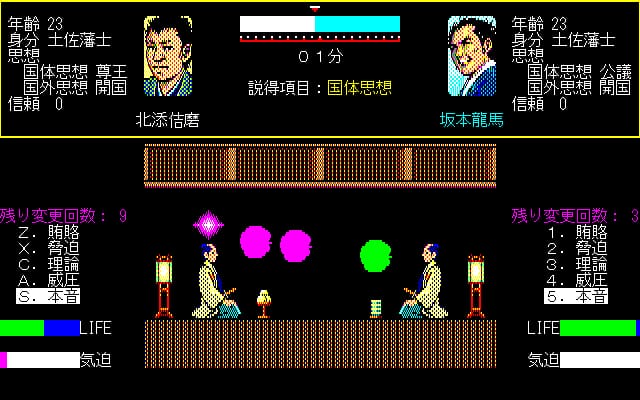 舞台は幕末。坂本龍馬・勝海舟・西郷隆盛などの12人の要人から1人を選択し、佐幕・尊王・公議に分断された全国13藩を「説得」や「武力」によって自分の思想に統一し、日本に夜明けを導きます。