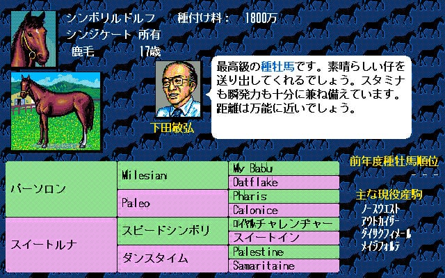 ロマンあふれる馬主の人生を体験できる人気シリーズの第一作。一人の馬主となり、調教師や厩務員、騎手たちとの交流の中で強い競走馬づくりを体験。日本ダービーや天皇賞など大レースへの参加はもちろん、世界最高峰のレース「凱旋門賞」での出走を目指します。